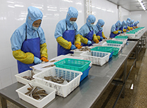 公司主要收購、加工各類水產品、土特產品。主導產品為北極貝系列、黃海梭子蟹系列、干蝦系列、魷魚章魚系列、各種魚類以及青柳蛤、雜色蛤、海螺、玉螺等各種貝類。